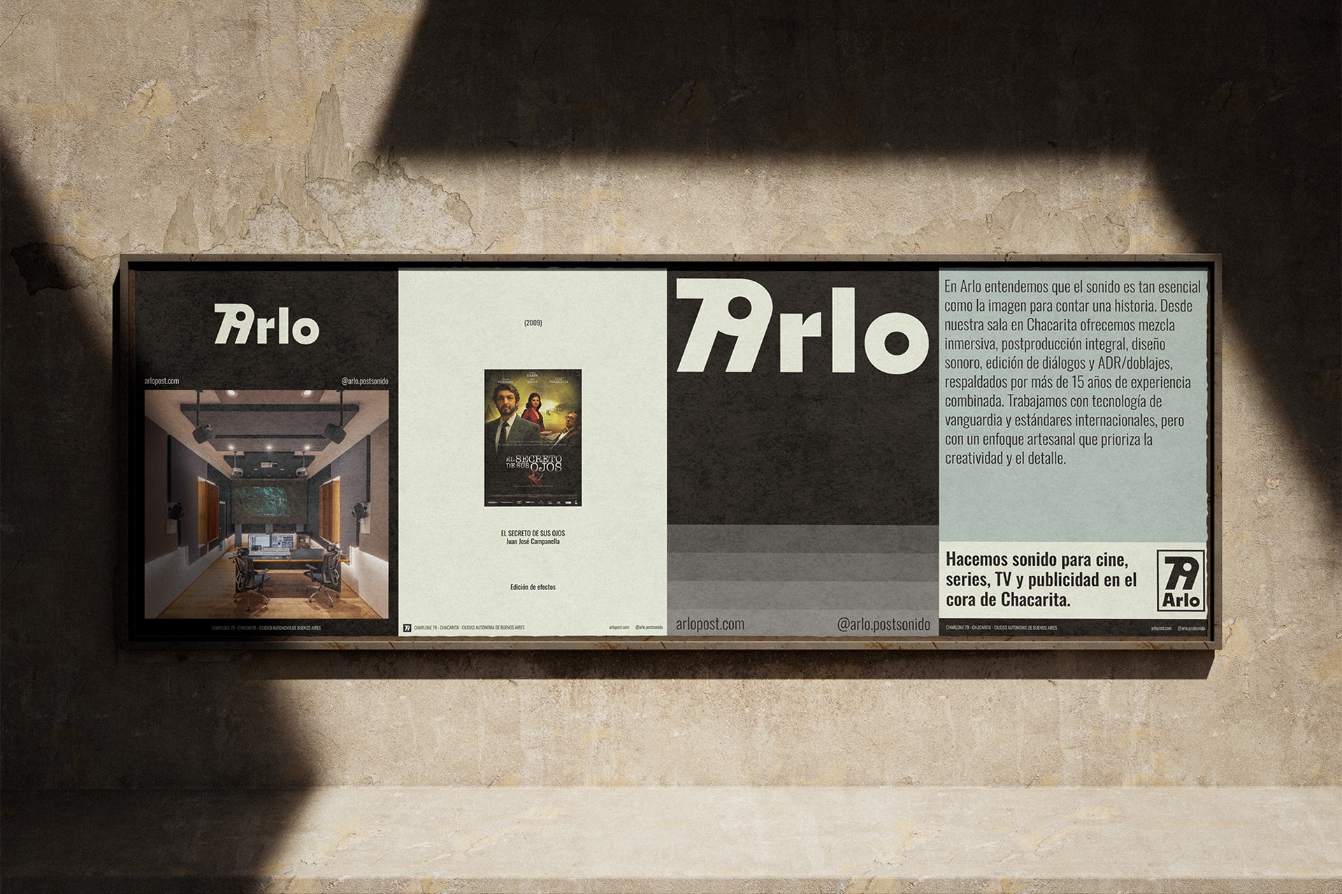 ARLO is a sound studio with over 15 years of combined experience in mixing, sound design, dialogue editing, ADR and post-production for film, series, television and advertising. When the new owners took over the studio — a long-standing space located at Charlone 79, in the heart of Chacarita — they faced a pivotal transition: preserving the spirit of the place while opening it to new markets and audiences. TRICOTA was invited to lead the brand identity, photography direction and web design (UX/UI), with the goal of modernising the brand without erasing its history, reinforcing the idea of a “recording house”, and positioning the studio for its next chapter. Our process began with an in-depth phase of research and observation of the physical space — understanding its rhythm, rooms and architecture, and how the house itself shaped the recording experience. Those insights became the foundation of the brand concept. We then moved into art direction and photography, documenting the studios, equipment, textures, light and details that convey both the warmth of a home and the technical precision of a professional studio. Particular care was given to composition, visual narrative and aesthetic consistency across web and social platforms. Finally, we designed the digital experience: a modern, clear and accessible website that communicates professionalism while preserving the human character of the space. The result is a system that respects what was inherited and amplifies it. A simple, memorable brand deeply connected to its physical space. A contemporary and warm visual identity. Professional photography that tells a genuine story. And a modern, clear and aspirational website. Branding does not always mean breaking in order to create. Sometimes it is about listening, understanding, and refining what already exists. The key was working with sensitivity — protecting the legacy while building a visual narrative that honours it. If we were to approach the project again, we would likely document the human side of the process even further, as it proved to be just as important as the technical work.