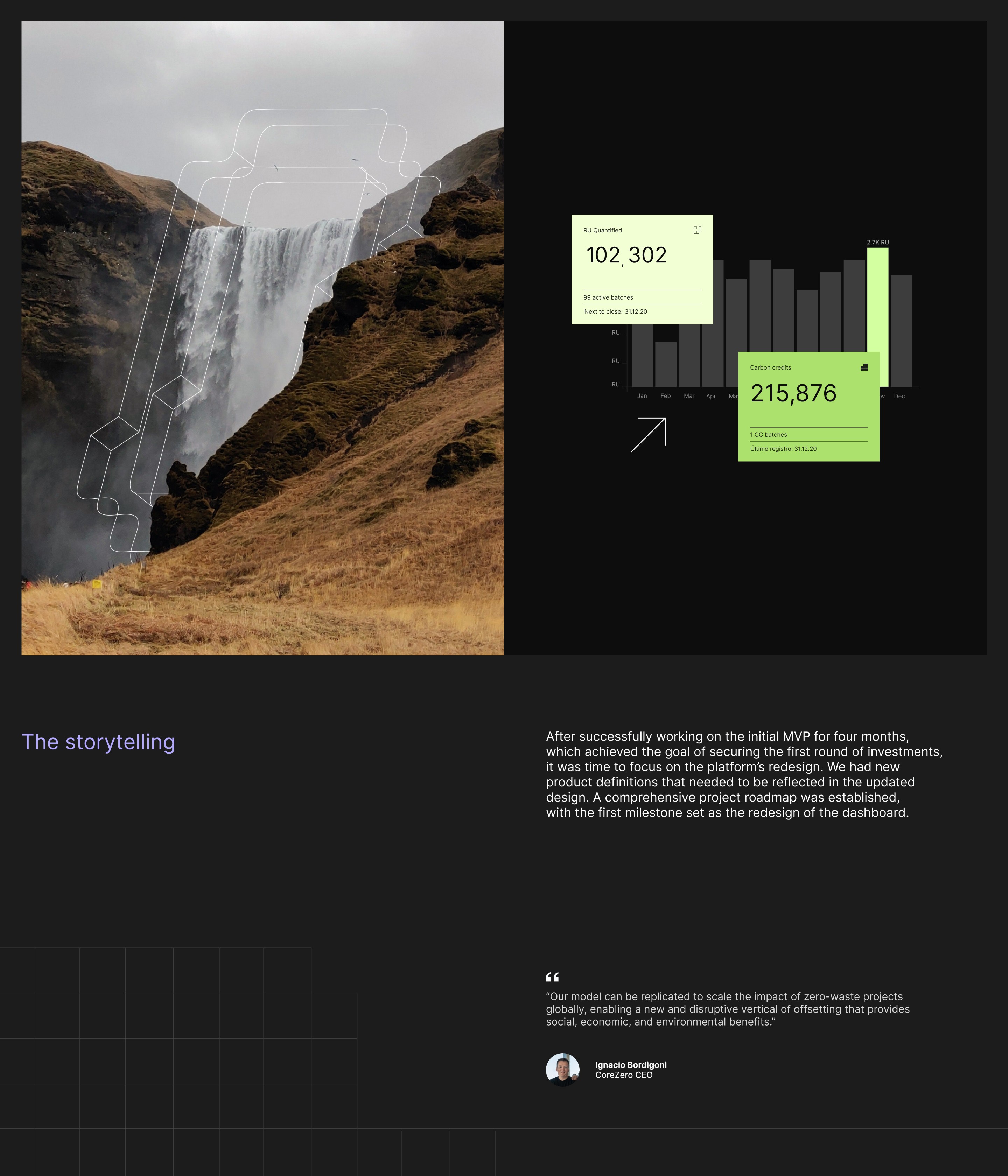 We designed a digital platform for a unique climate tech company — one that turns environmental efforts into measurable impact. The challenge: to translate complex concepts from the green economy into a clear, intuitive experience. Through thoughtful UX, visual clarity, and sharp verbal design, we helped make carbon credits accessible, traceable, and engaging.