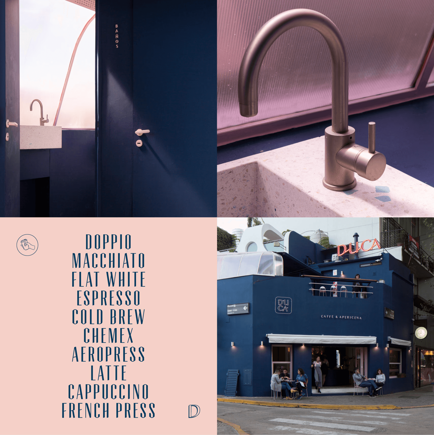 DUCCA was born from the Italian ritual of l’apericena — a relaxed moment of shared small plates, aperitifs, and coffee. We researched and introduced the concept in Buenos Aires, grounding it in a visual and cultural language that was new to the local scene. It was one of the first spaces in the city to adopt the Memphis style — a bold, geometric, and playful design language from Italy’s radical 1980s movement. The art direction sustained that identity with coherence: vibrant materials, joyful forms, and a precise graphic structure. A visual system with character and clarity. Architecture by Ripani Navia